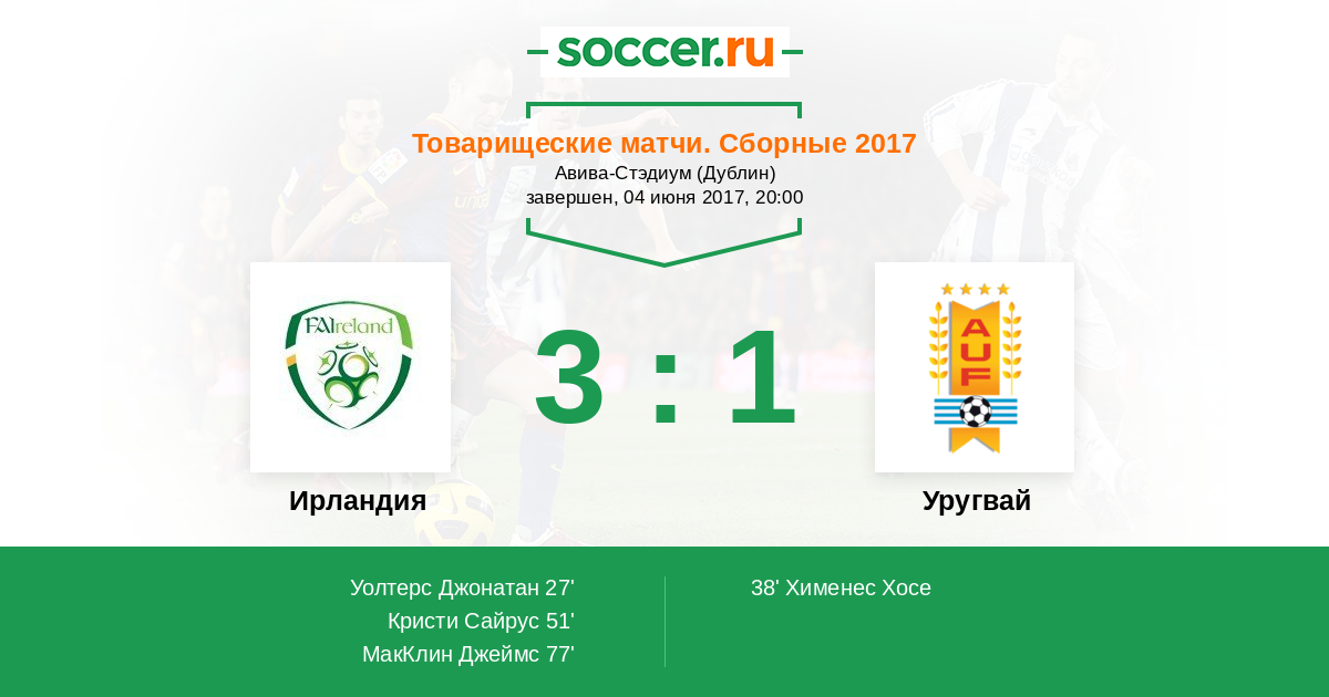 Ирландия - Уругвай: обзор матча 4 июня 2017