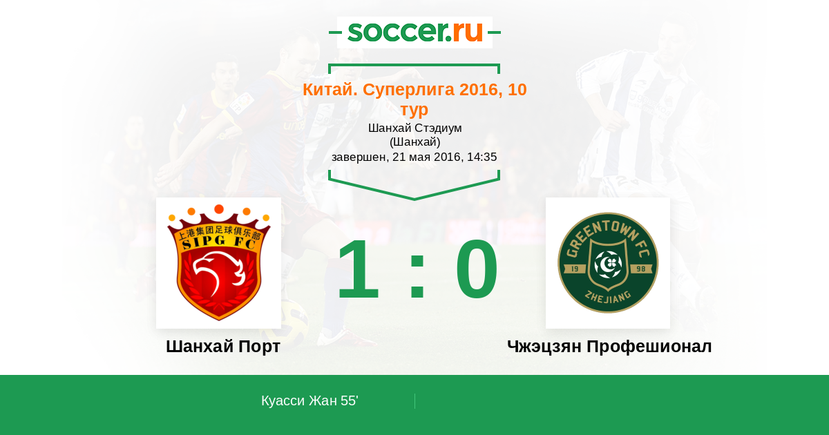 Шанхай Порт - Чжэцзян Профешионал: обзор матча 21 мая 2016