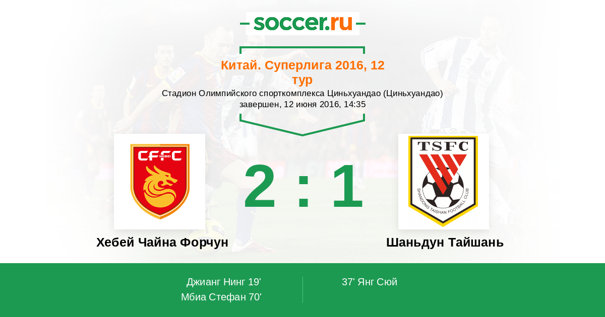 Хебей Чайна Форчун - Шаньдун Тайшань: обзор матча 12 июня 2016