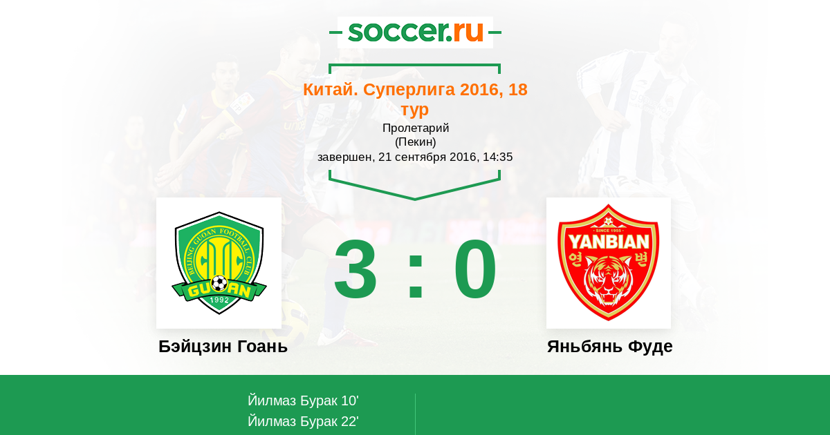 Бэйцзин Гоань - Яньбянь Фуде: обзор матча 21 сентября 2016