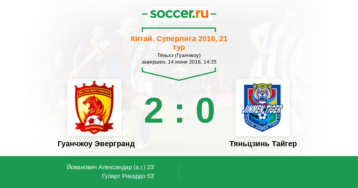 Гуанчжоу Эвергранд - Тяньцзинь Тайгер: обзор матча 14 июня 2016