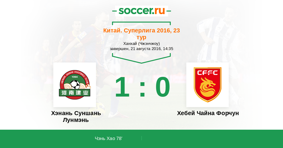 Хэнань Суншань Лунмэнь - Хебей Чайна Форчун: обзор матча 21 августа 2016