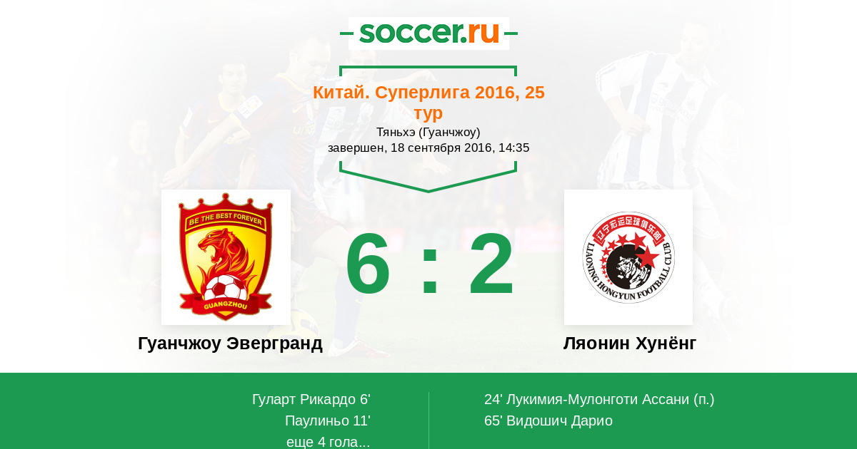 Гуанчжоу Эвергранд - Ляонин Хунёнг: обзор матча 18 сентября 2016
