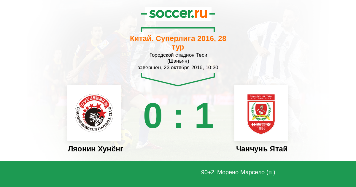 Ляонин Хунёнг - Чанчунь Ятай: обзор матча 23 октября 2016