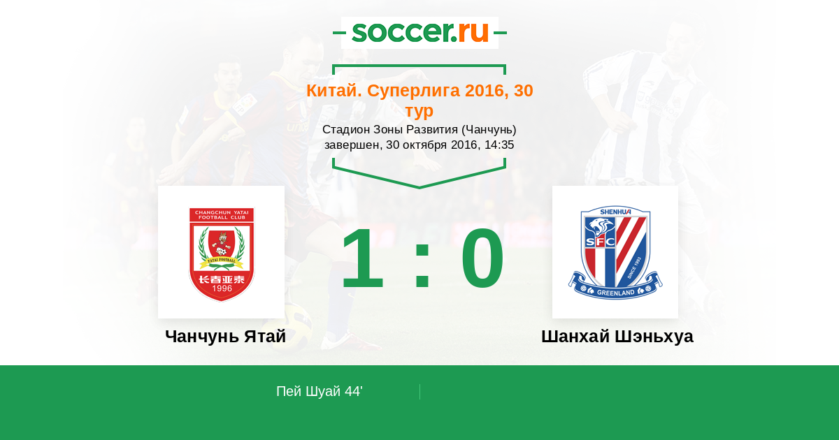 Чанчунь Ятай - Шанхай Шэньхуа: обзор матча 30 октября 2016
