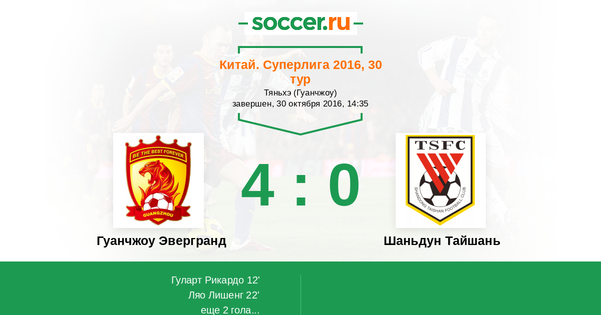 Гуанчжоу Эвергранд - Шаньдун Тайшань: обзор матча 30 октября 2016