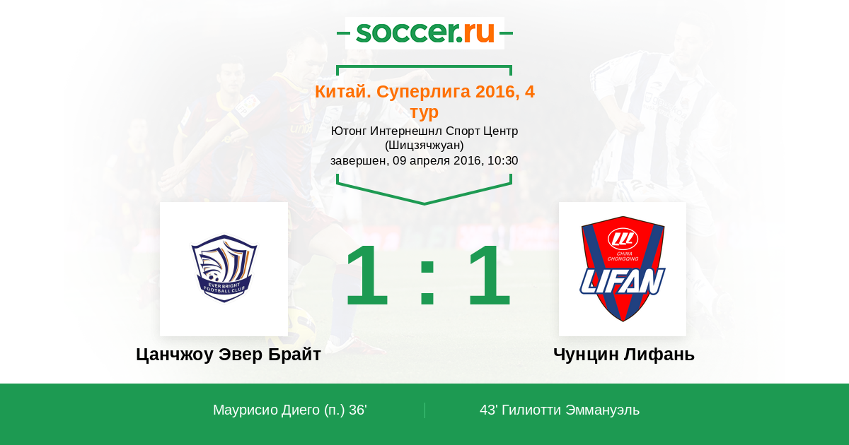 Цанчжоу Эвер Брайт - Чунцин Лифань: обзор матча 9 апреля 2016