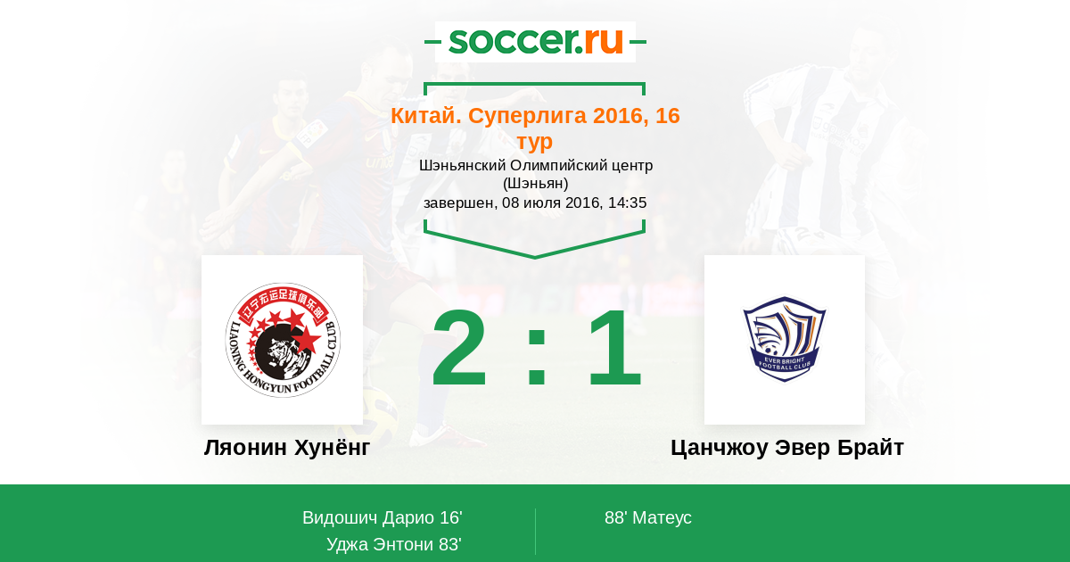 Ляонин Хунёнг - Цанчжоу Эвер Брайт: обзор матча 8 июля 2016
