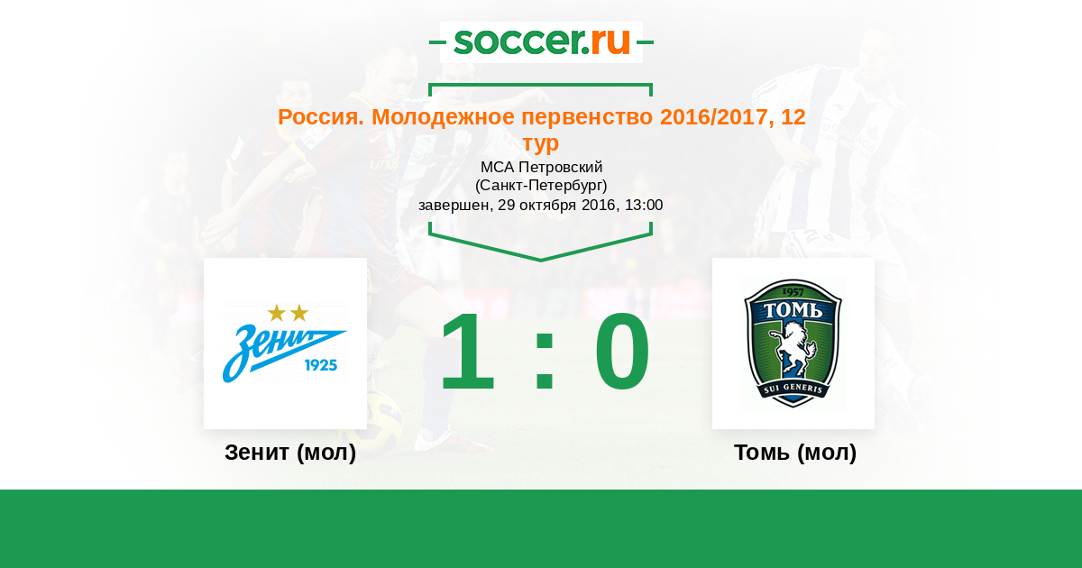 Зенит (мол) - Томь (мол): обзор матча 29 октября 2016