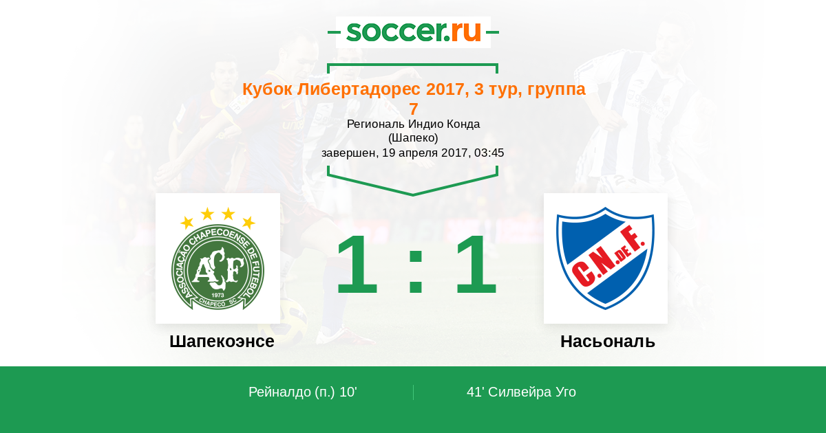 Шапекоэнсе - Насьональ: обзор матча 19 апреля 2017