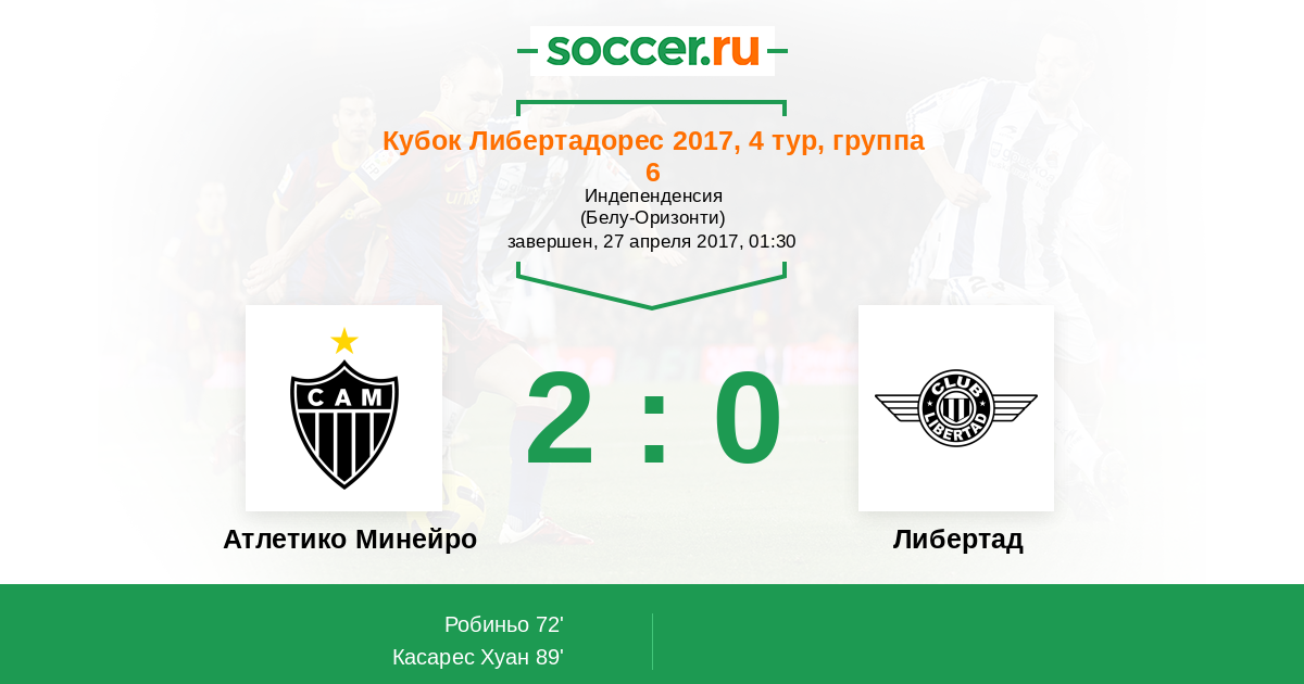 Атлетико Минейро - Либертад: обзор матча 27 апреля 2017