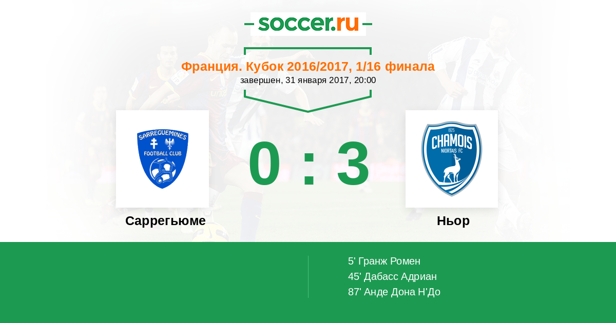 Саррегьюме - Ньор: обзор матча 31 января 2017