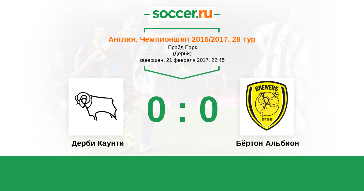 Дерби Каунти - Бёртон Альбион: обзор матча 21 февраля 2017