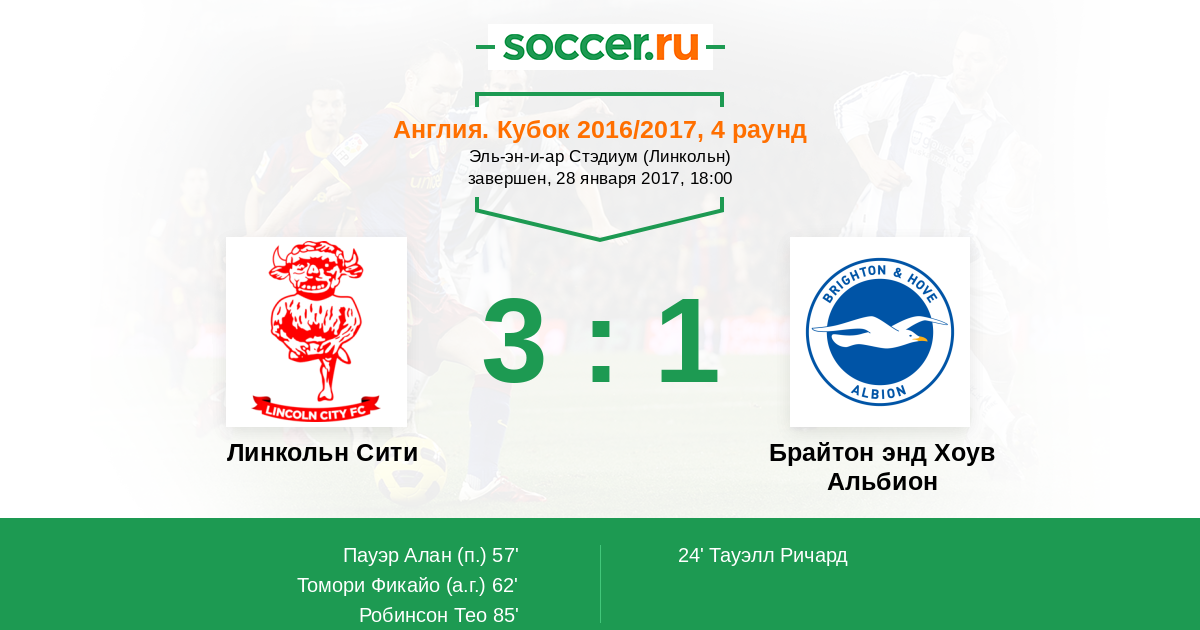 Линкольн Сити - Брайтон энд Хоув Альбион: обзор матча 28 января 2017