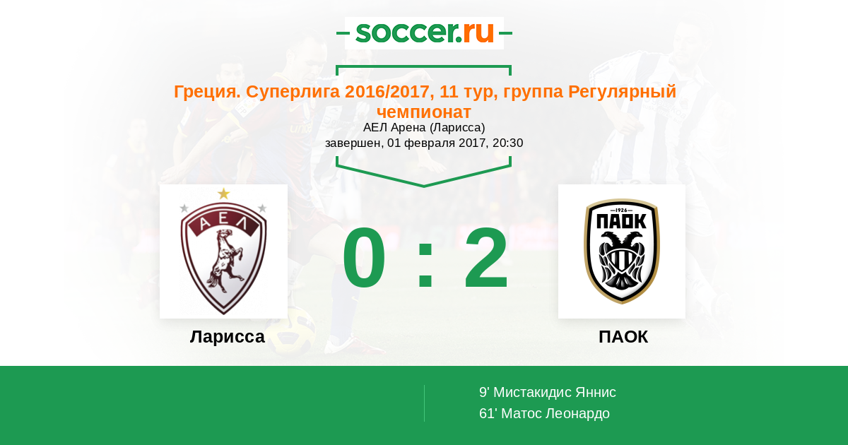 Ларисса - ПАОК: обзор матча 1 февраля 2017