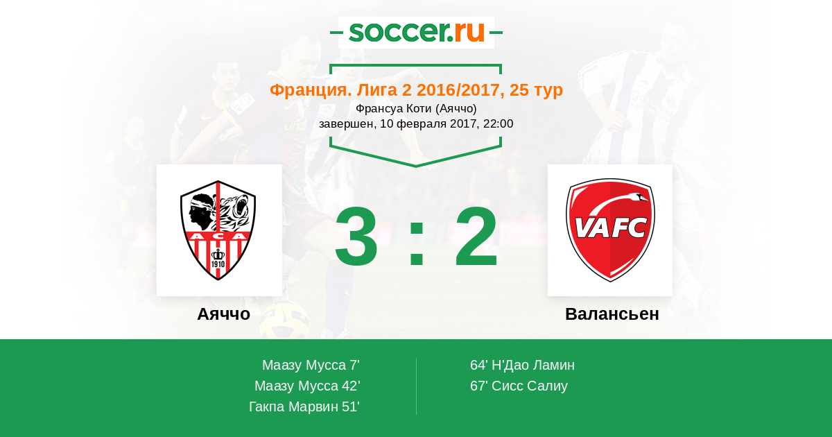 Аяччо - Валансьен: обзор матча 10 февраля 2017