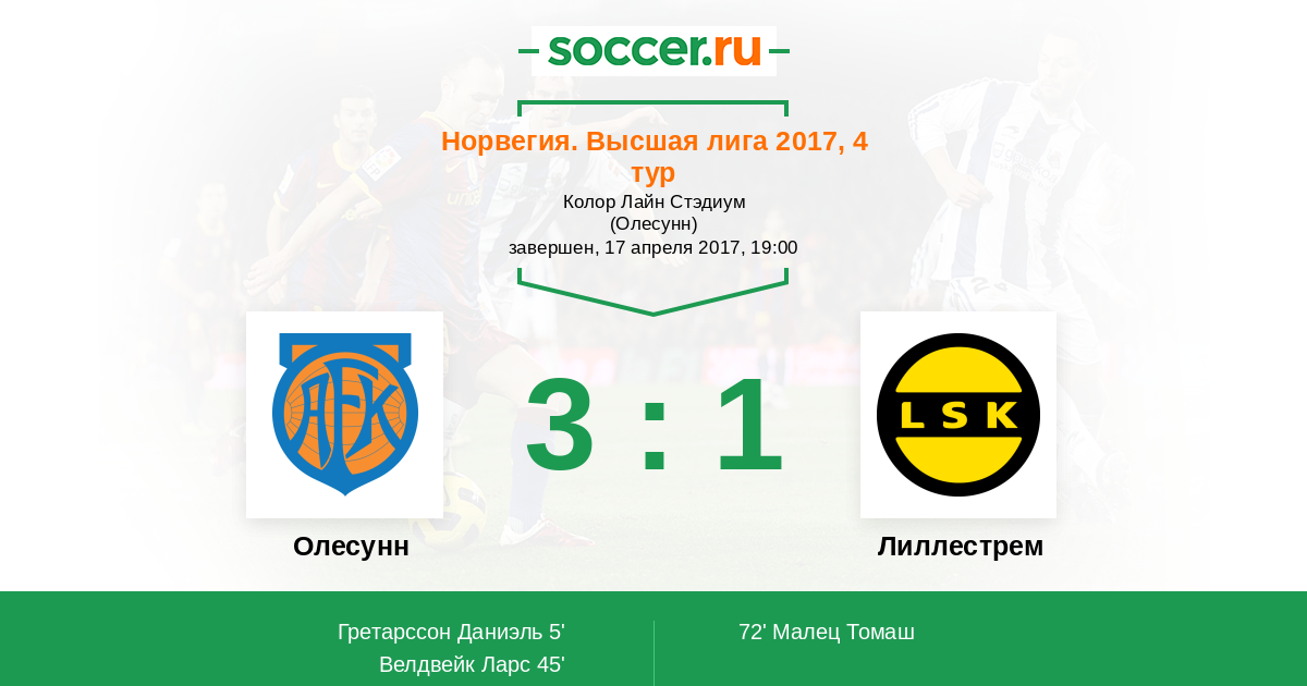 Олесунн - Лиллестрем: обзор матча 17 апреля 2017