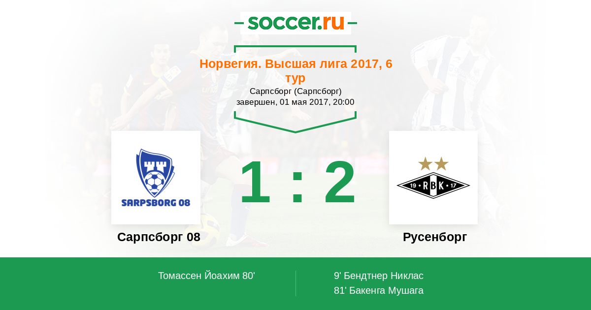 Сарпсборг 08 - Русенборг: обзор матча 1 мая 2017