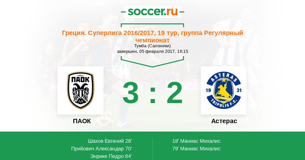 ПАОК - Астерас: обзор матча 5 февраля 2017