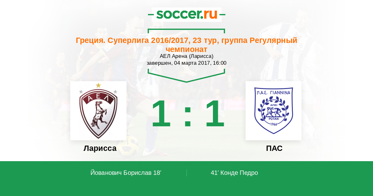 Ларисса - ПАС: обзор матча 4 марта 2017