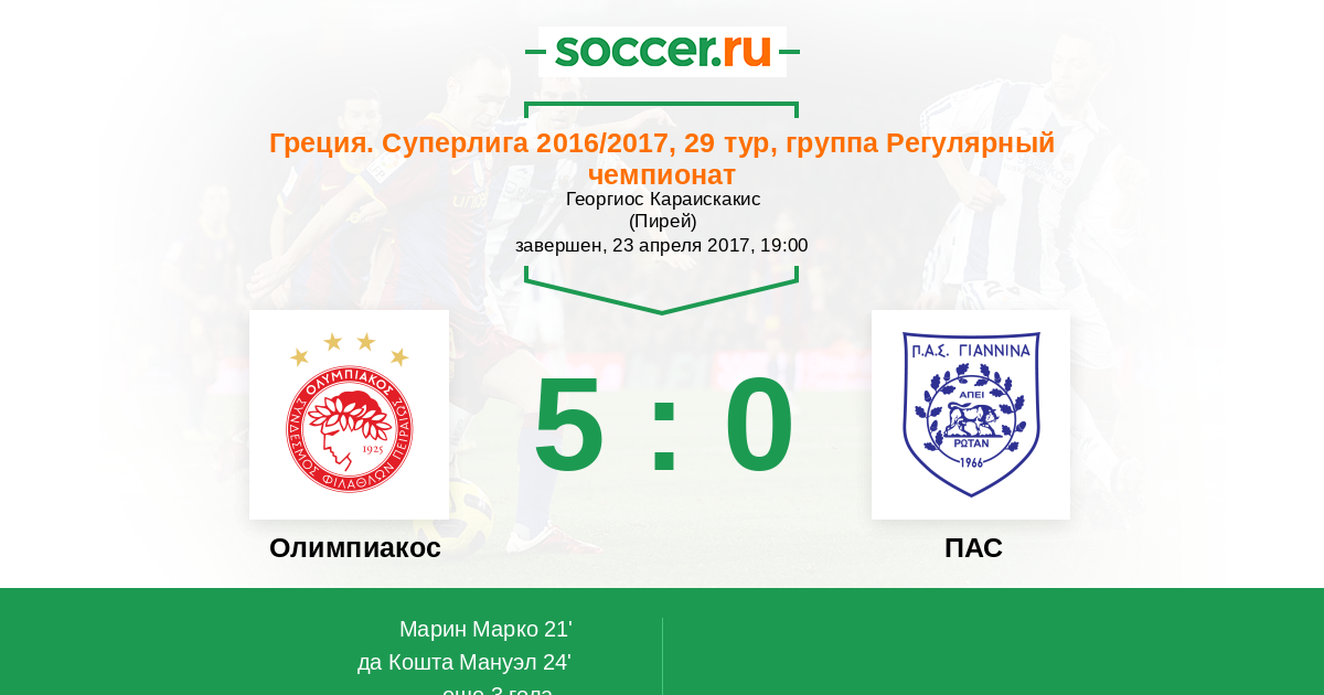 Олимпиакос - ПАС: обзор матча 23 апреля 2017