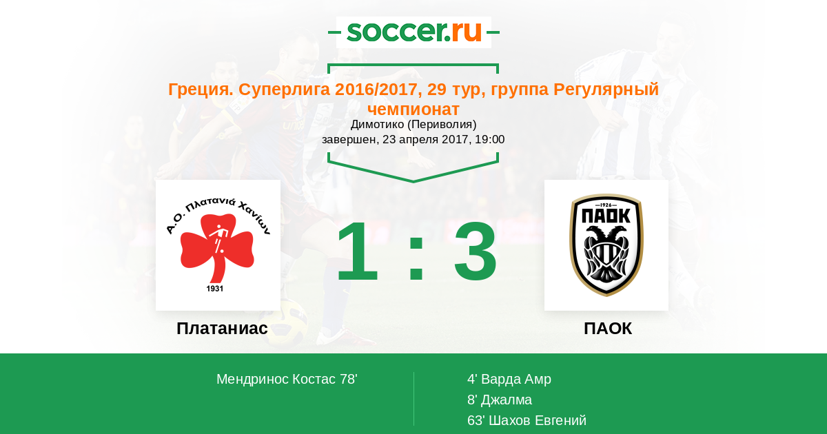 Платаниас - ПАОК: обзор матча 23 апреля 2017