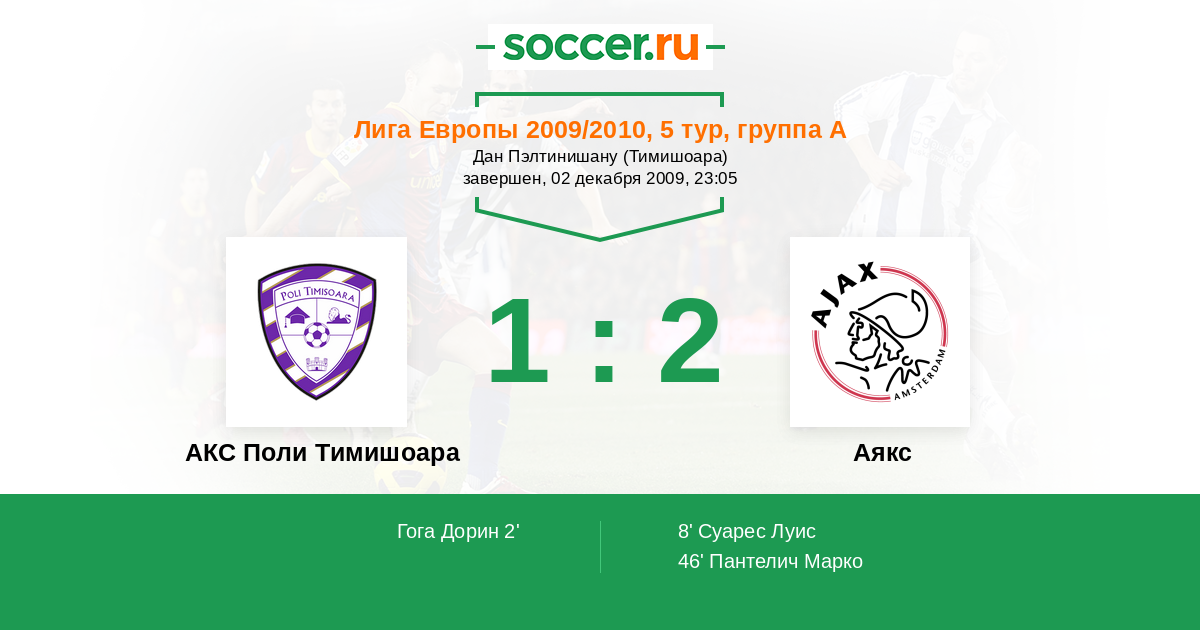 АКС Поли Тимишоара - Аякс: обзор матча 2 декабря 2009