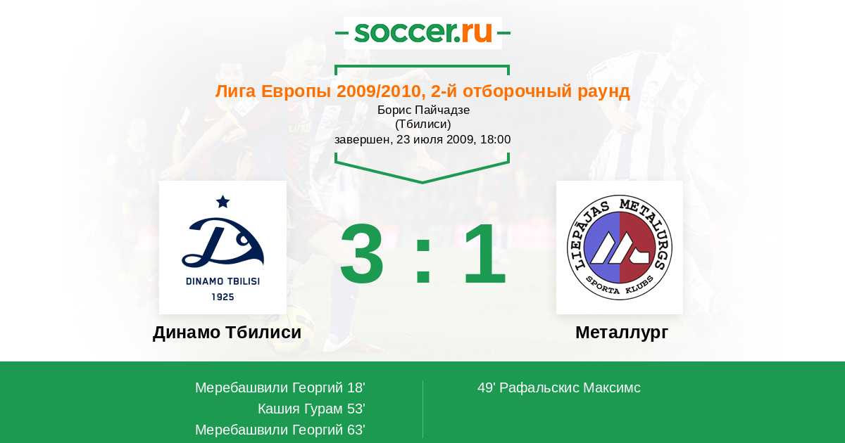 Динамо Тбилиси - Металлург: обзор матча 23 июля 2009