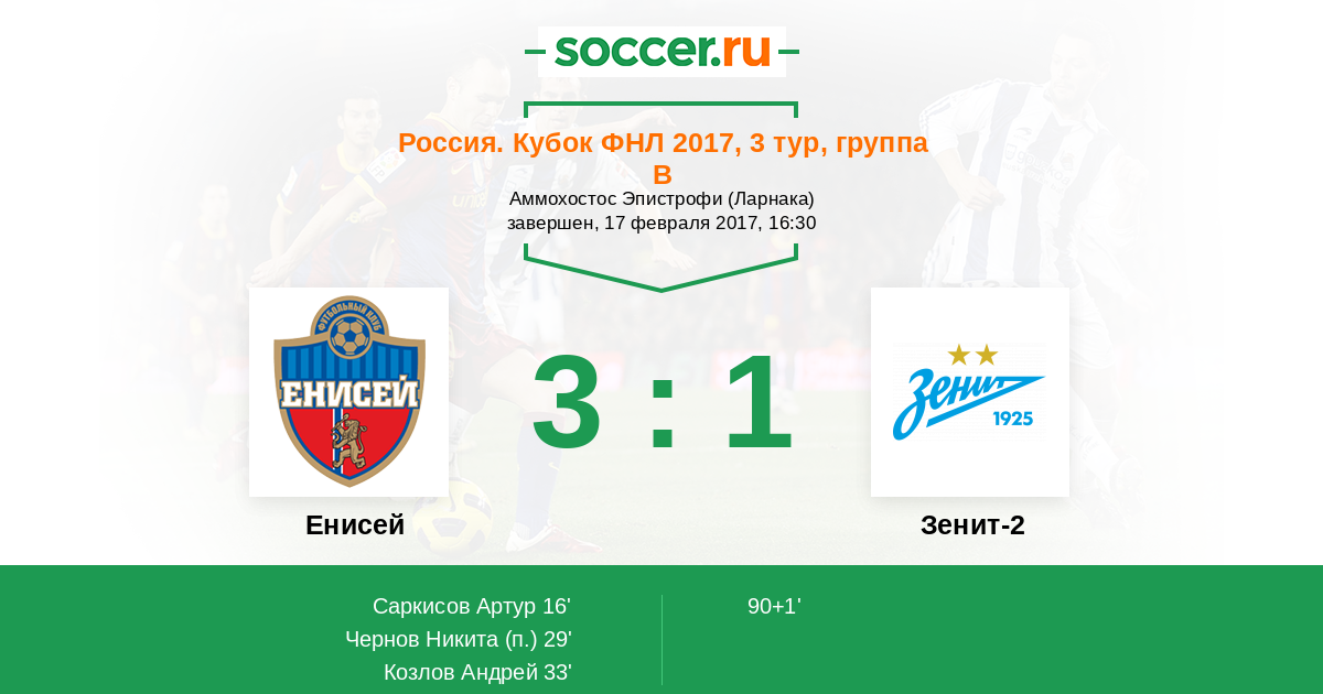 Енисей - Зенит-2: обзор матча 17 февраля 2017