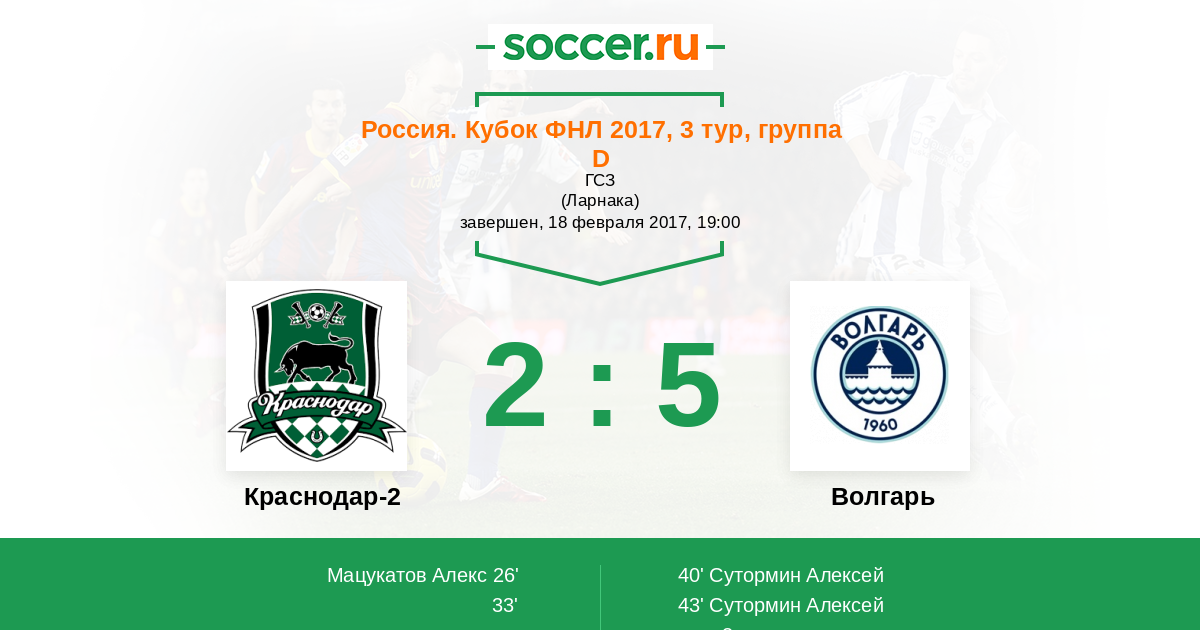 Краснодар-2 - Волгарь: обзор матча 18 февраля 2017