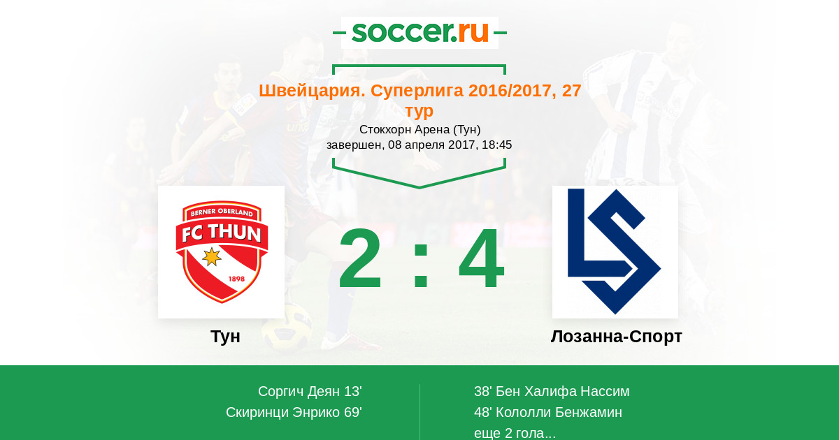 Тун - Лозанна-Спорт: обзор матча 8 апреля 2017