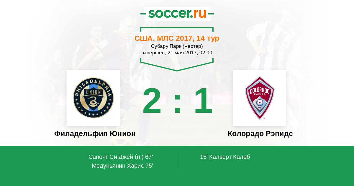Филадельфия Юнион - Колорадо Рэпидс: обзор матча 21 мая 2017