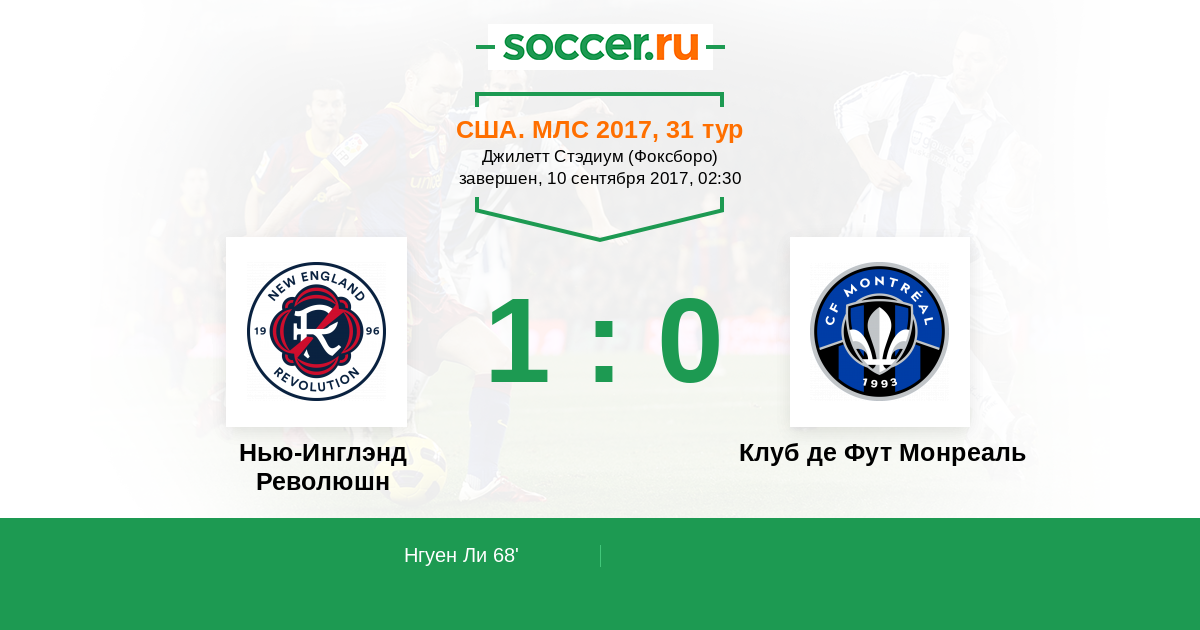 Нью-Инглэнд Революшн - Клуб де Фут Монреаль: обзор матча 10 сентября 2017