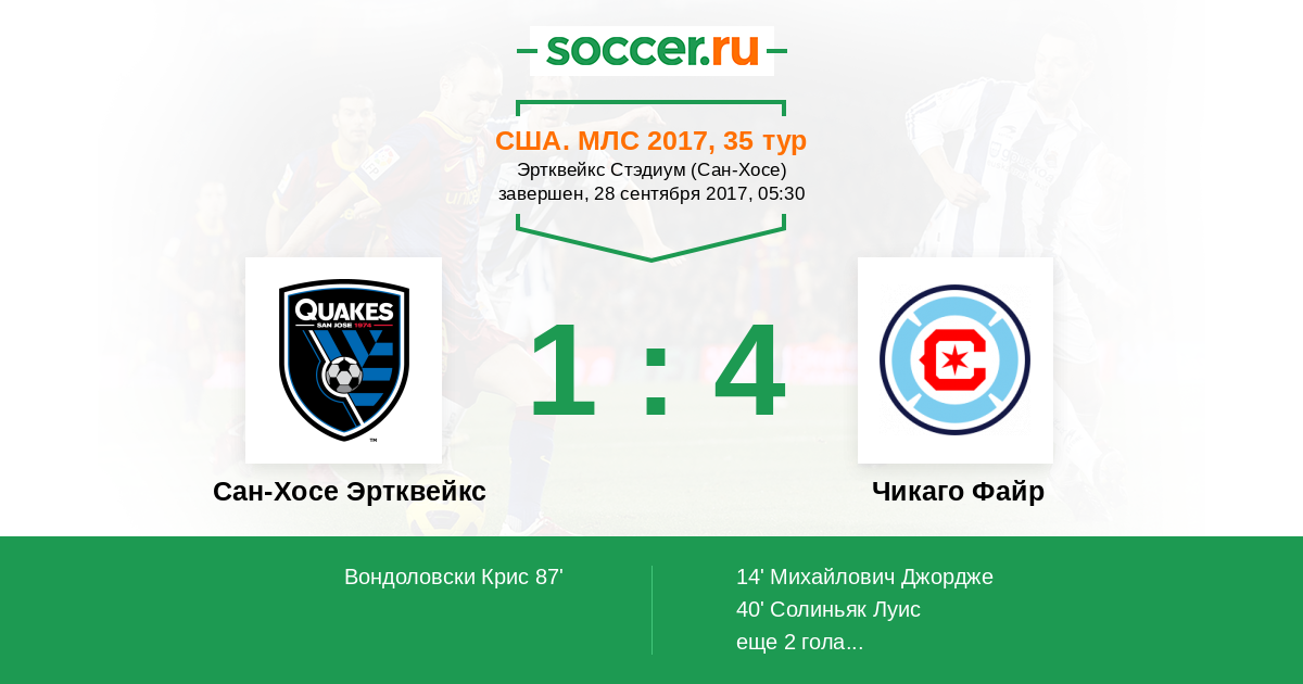 Сан-Хосе Эртквейкс - Чикаго Файр: обзор матча 28 сентября 2017