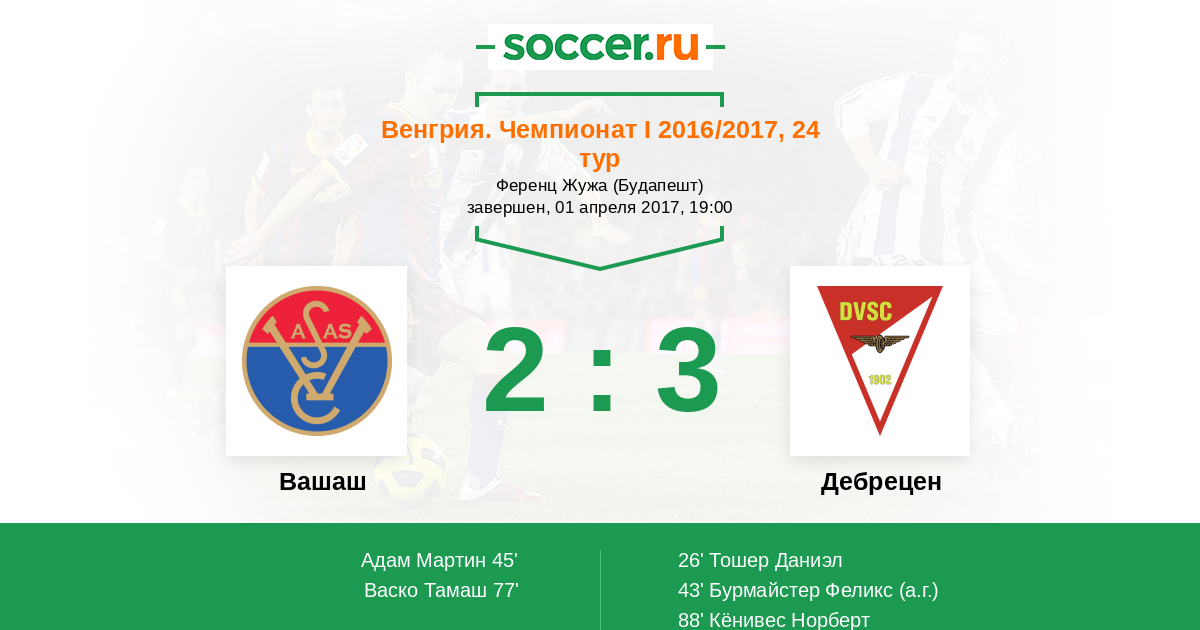 Вашаш - Дебрецен: обзор матча 1 апреля 2017