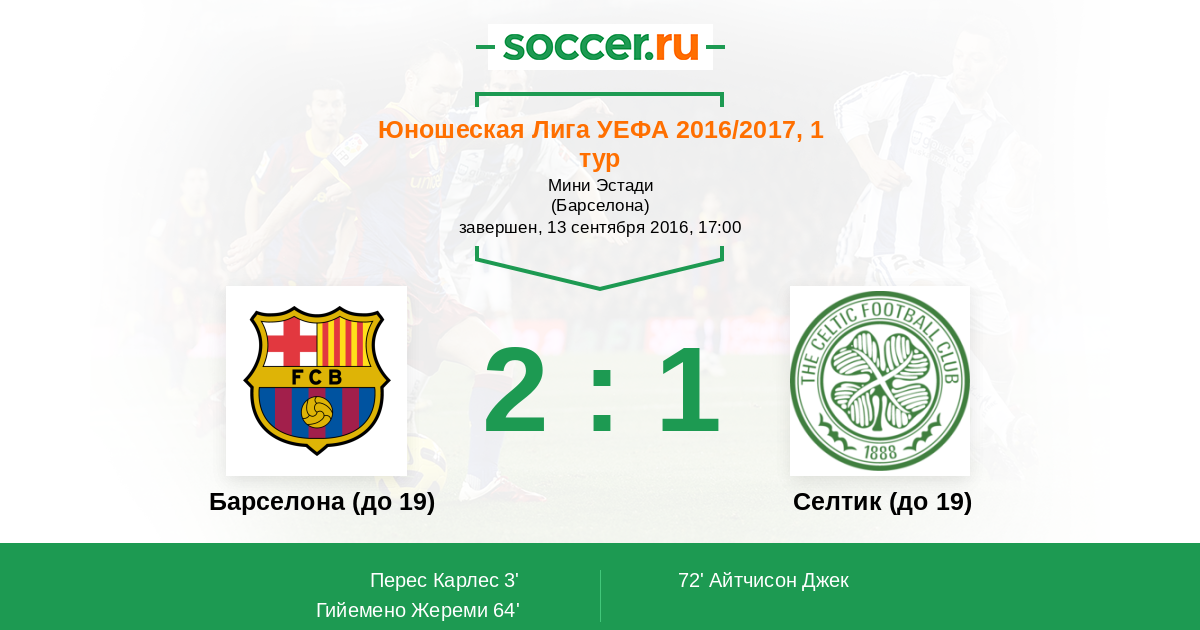 Барселона (до 19) - Селтик (до 19): обзор матча 13 сентября 2016