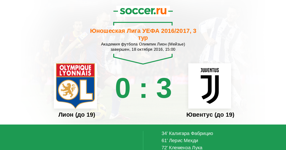 Лион (до 19) - Ювентус (до 19): обзор матча 18 октября 2016