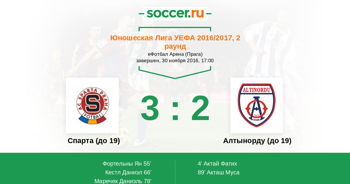 Спарта (до 19) - Алтынорду (до 19): обзор матча 30 ноября 2016