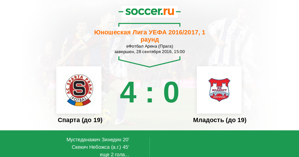 Спарта (до 19) - Младость (до 19): обзор матча 28 сентября 2016