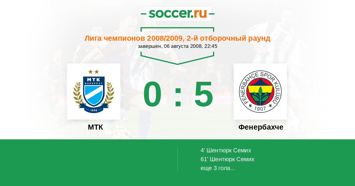 МТК - Фенербахче: обзор матча 6 августа 2008