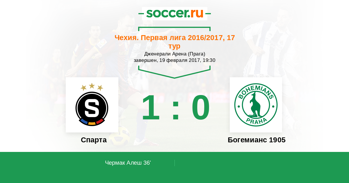 Спарта - Богемианс 1905: обзор матча 19 февраля 2017