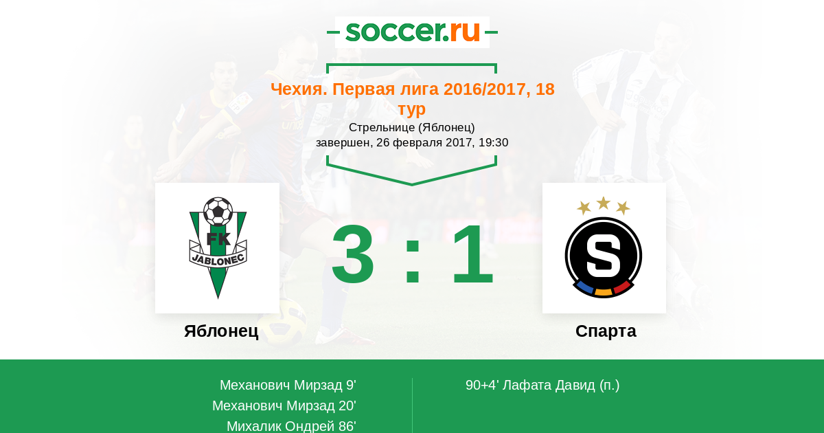 Яблонец - Спарта: обзор матча 26 февраля 2017