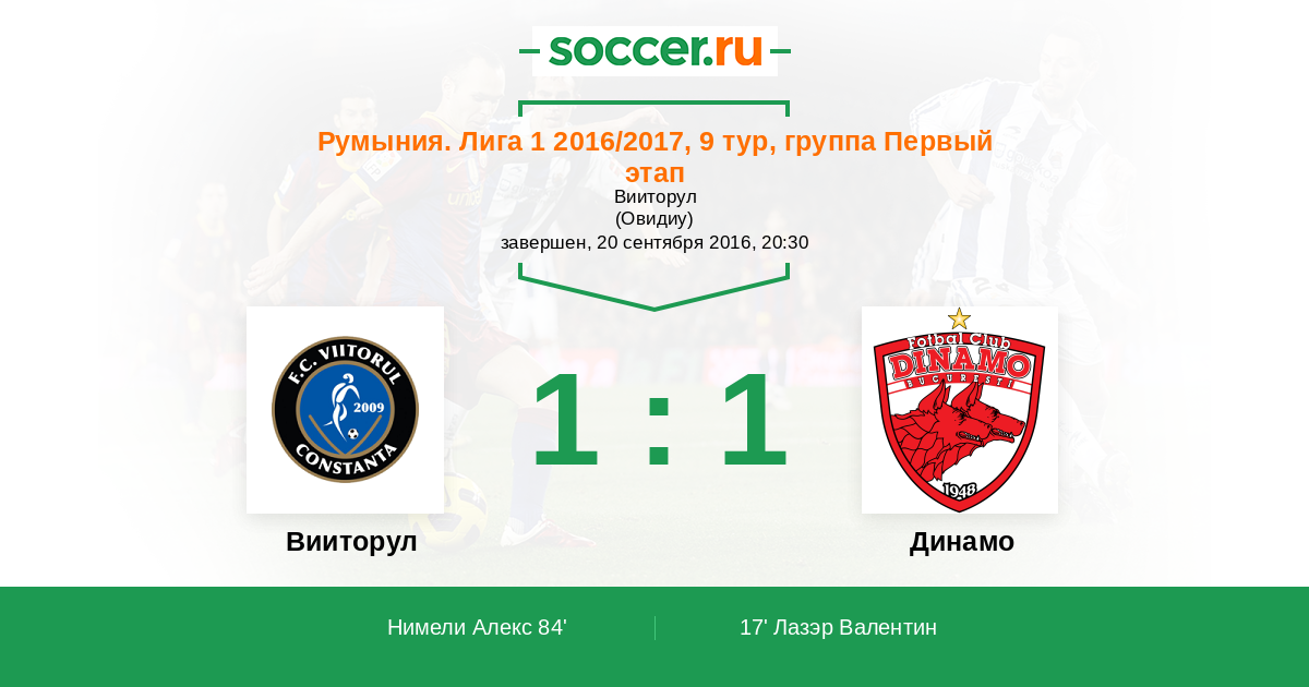 Вииторул - Динамо: обзор матча 20 сентября 2016
