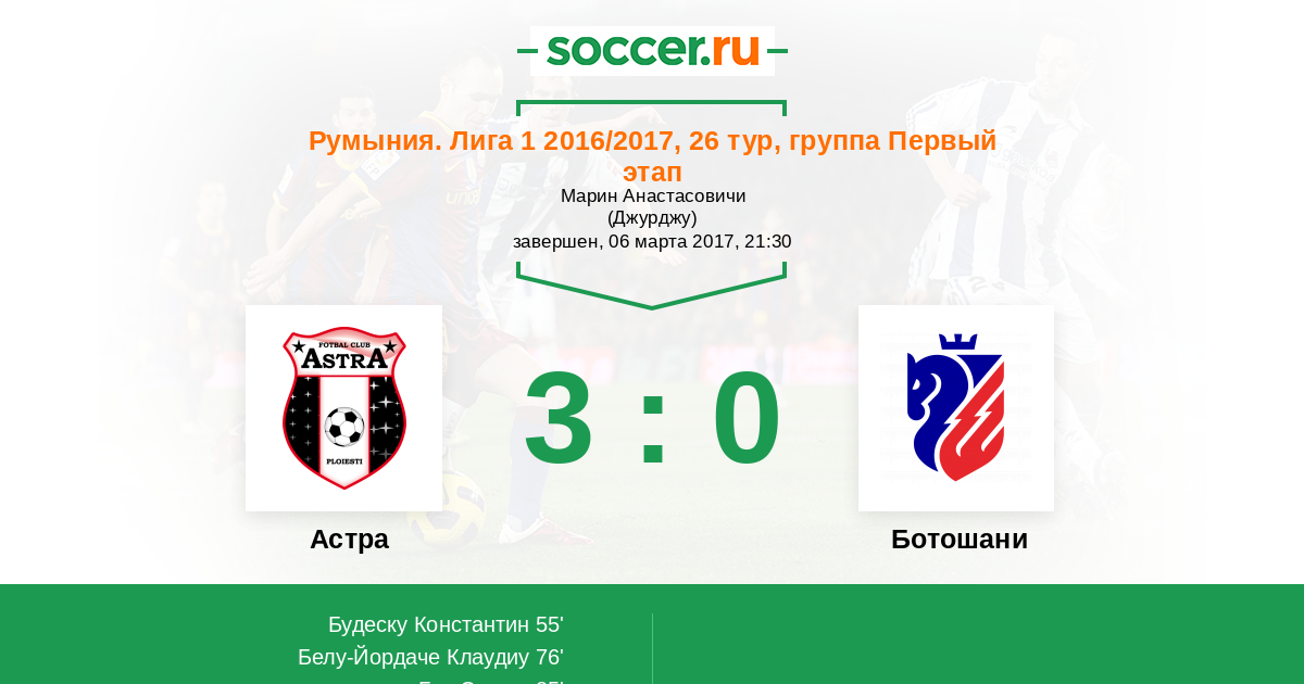 Астра - Ботошани: обзор матча 6 марта 2017