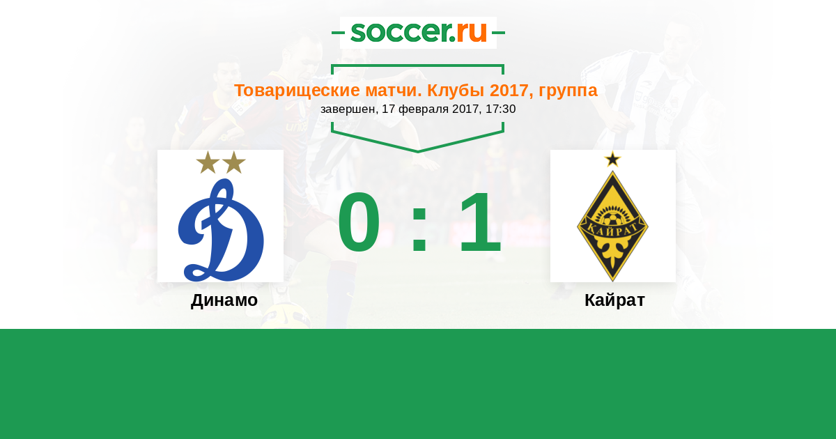 Динамо - Кайрат: обзор матча 17 февраля 2017