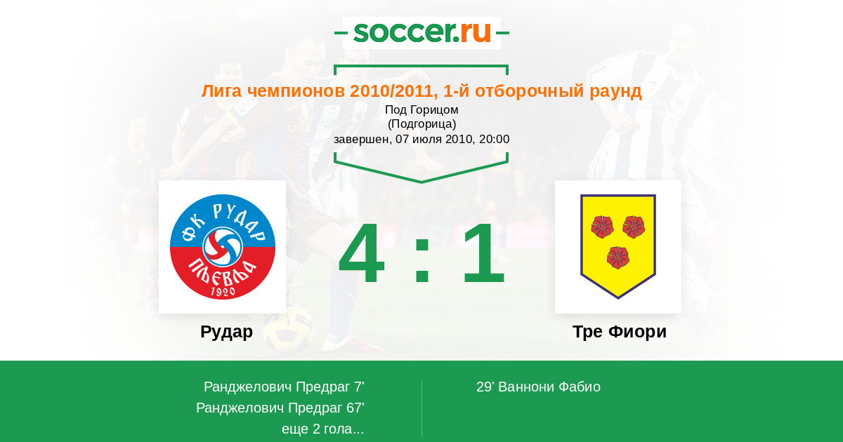 Рудар - Тре Фиори: обзор матча 7 июля 2010
