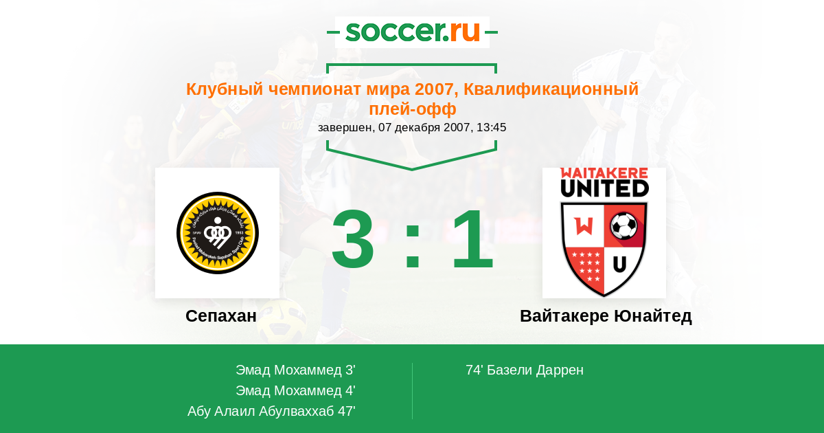 Сепахан - Вайтакере Юнайтед: обзор матча 7 декабря 2007