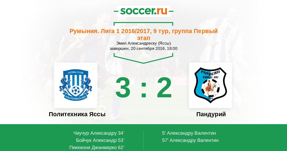 Политехника Яссы - Пандурий: обзор матча 20 сентября 2016