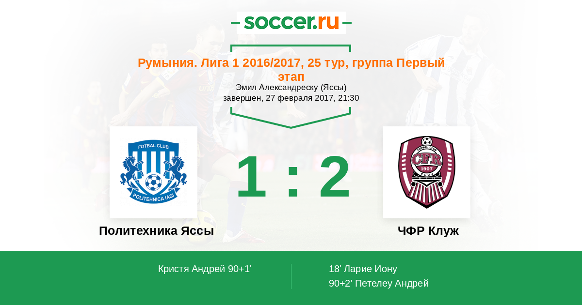 Политехника Яссы - ЧФР Клуж: обзор матча 27 февраля 2017