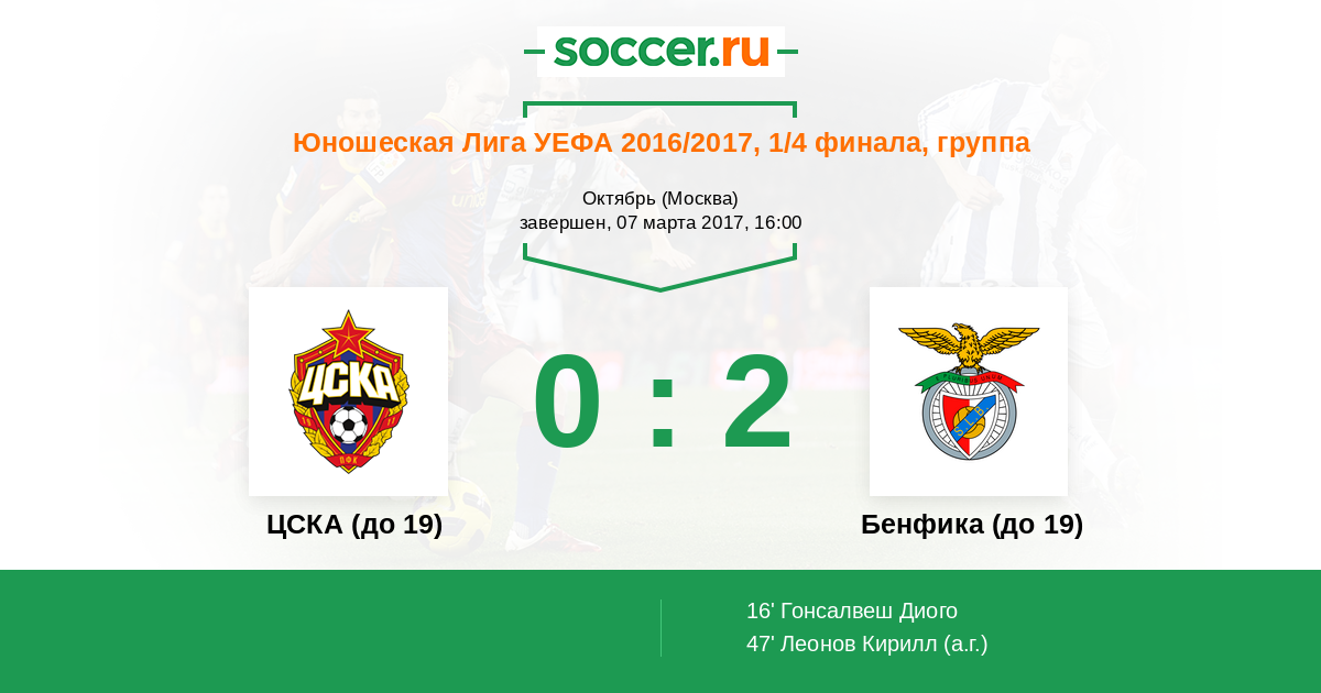 ЦСКА (до 19) - Бенфика (до 19): обзор матча 7 марта 2017